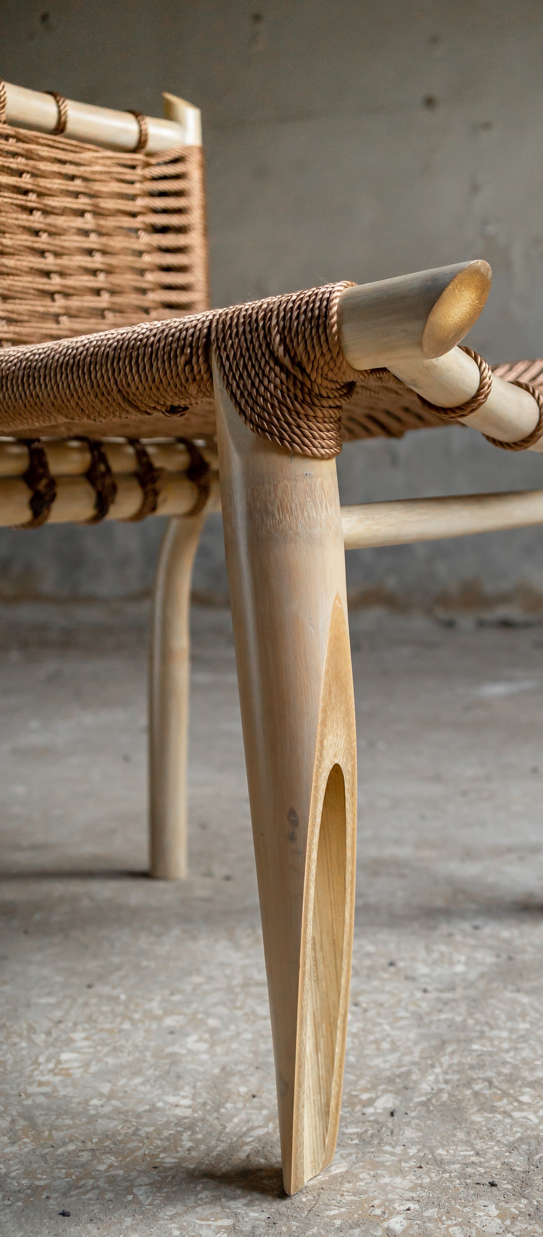 We avoid using industrially-processed bamboo, where the bamboo pole is broken down into smaller components and then pasted together to form standardized forms, boards, and panels. These industrial bamboo avatars generally use glue for lamination—which is often formaldehyde-based and very unsustainable. Industrially laminated bamboo composites are also more difficult to deal with during their end-of-life phase. We stick to handcrafting as far as possible to draw on the legacy of bamboo craft traditions and also because industrial bamboo value chains diminish the value added by bamboo-working producers, forcing them lower in the bamboo value-addition chain.