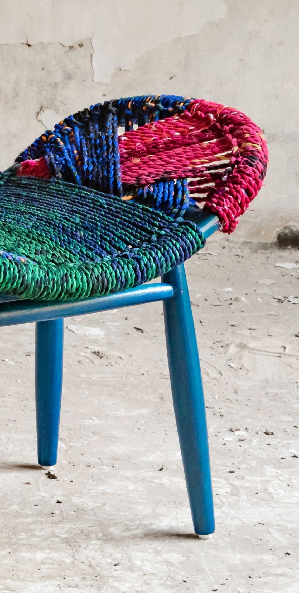 We’ve been incorporating Chindi ropes into our designs since the early 2000s, after discovering them in a local market. We were immediately captivated by their brilliant colours, their distinctly Indian essence, and the fact that they are made from recycled textile scraps.