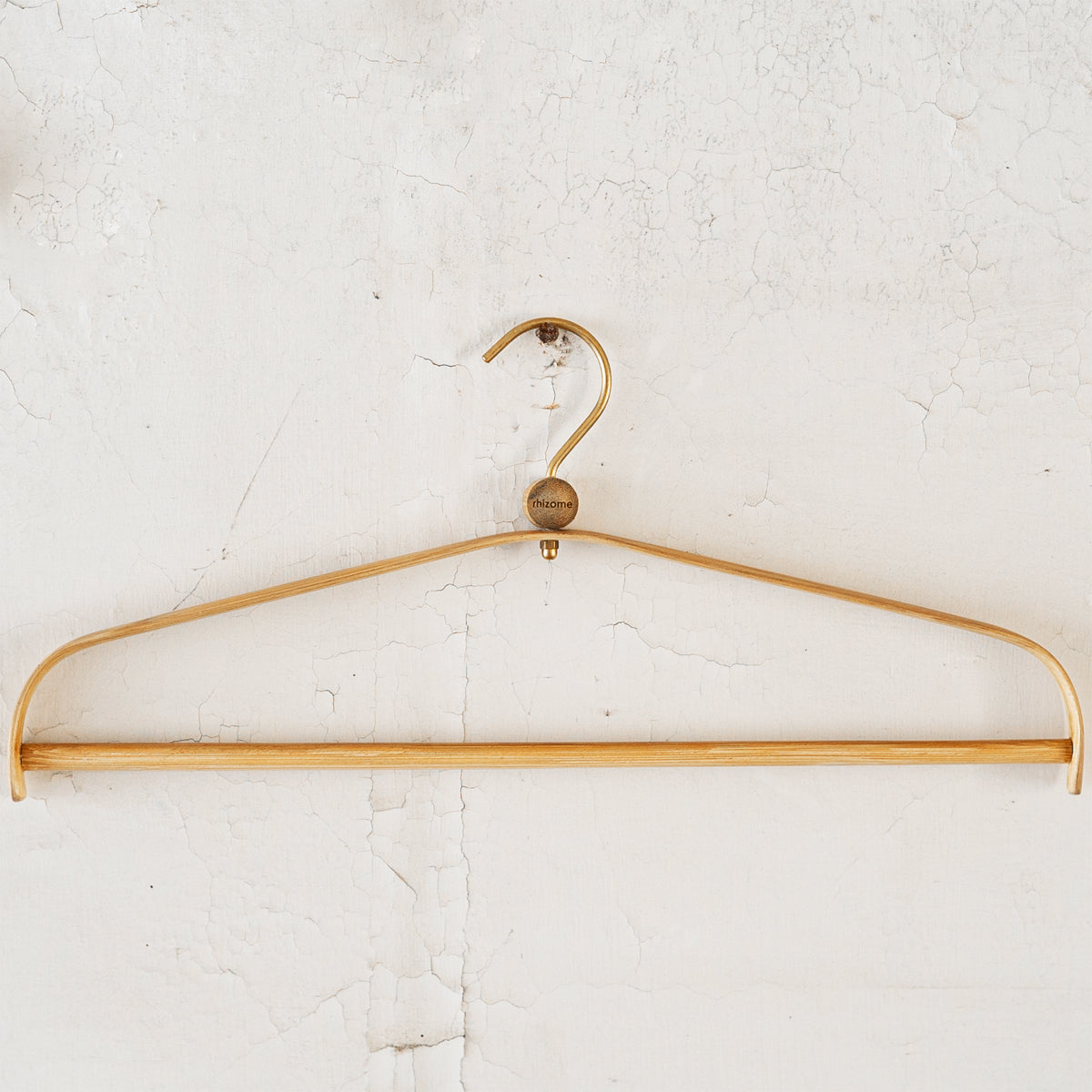 This beautiful hanger is handcrafted in bamboo. Each hanger has a solid brass hook with a bamboo disc where we can engrave your logo. The silhouette is carefully designed so your garments hang well. If you would prefer a smaller or larger hanger, please connect with us to explore customization possibilities.